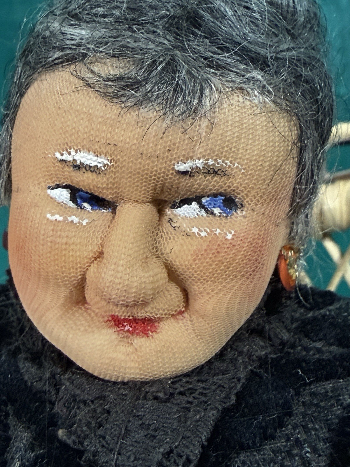 Ravca stockinette dolls! Each doll is about 11 1/2" tall. Original tags. Made of stuffed cloth. Hand painted faces. Holes and discolorations are present to their faces and clothes - see photos. Stand/chair are not included