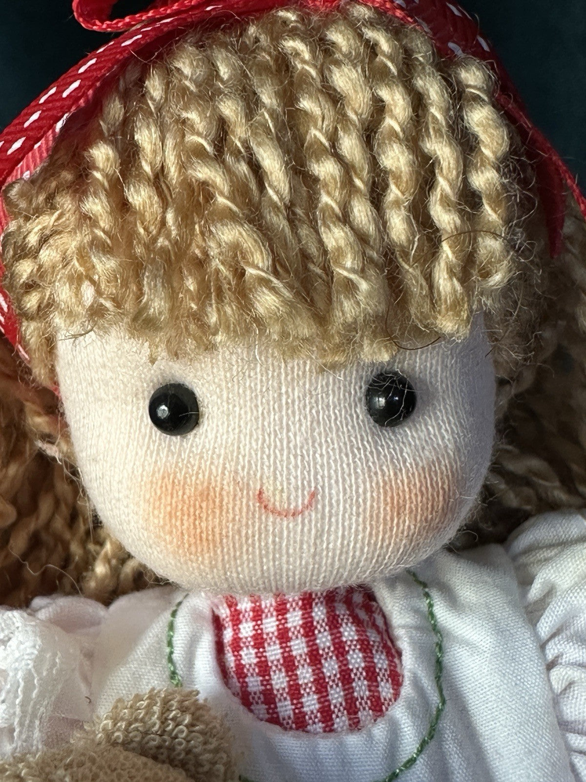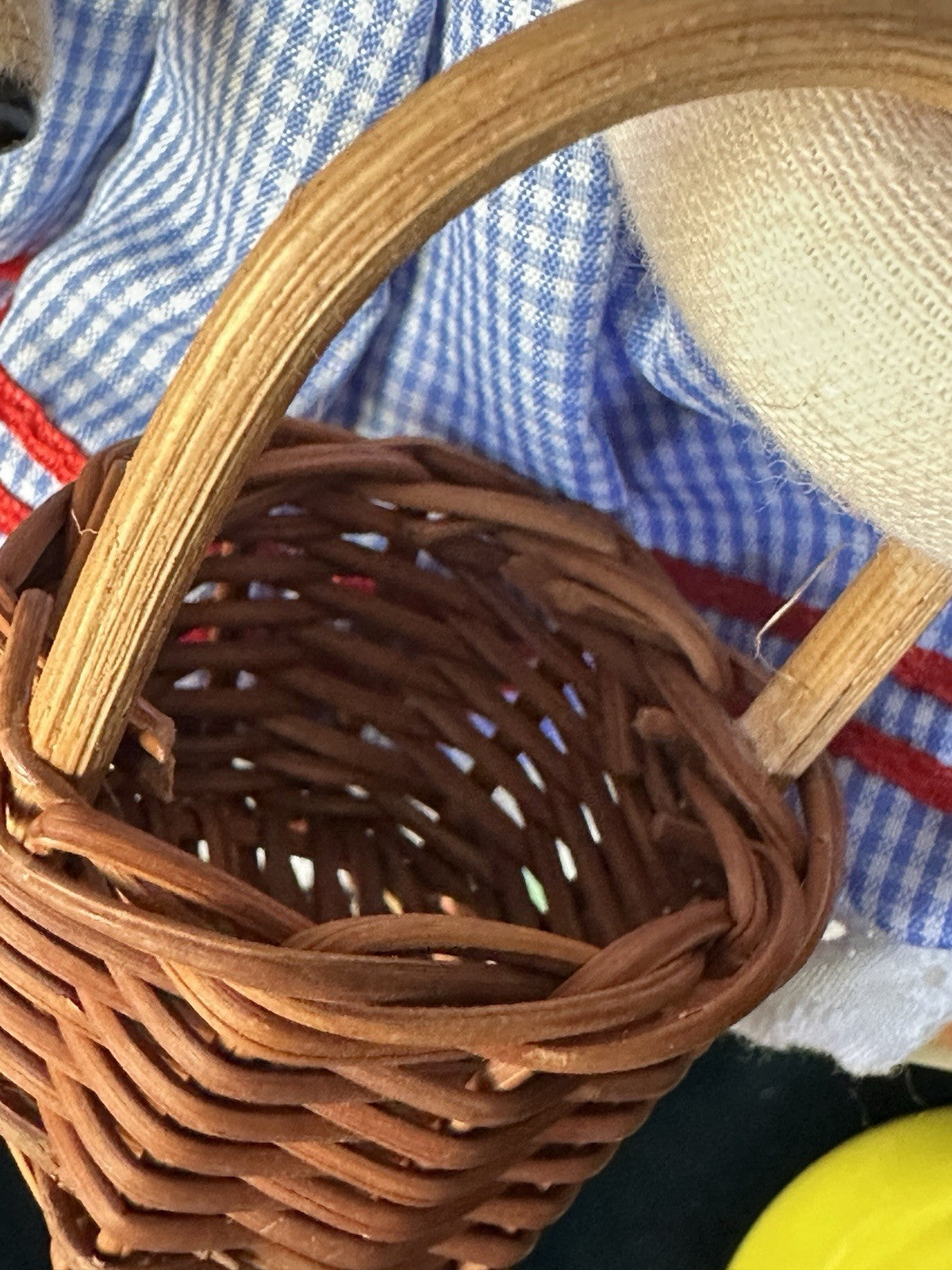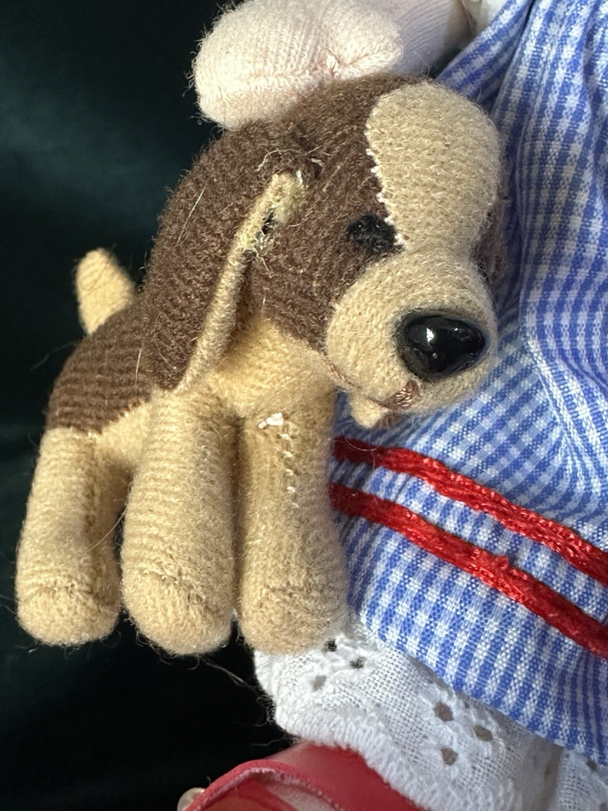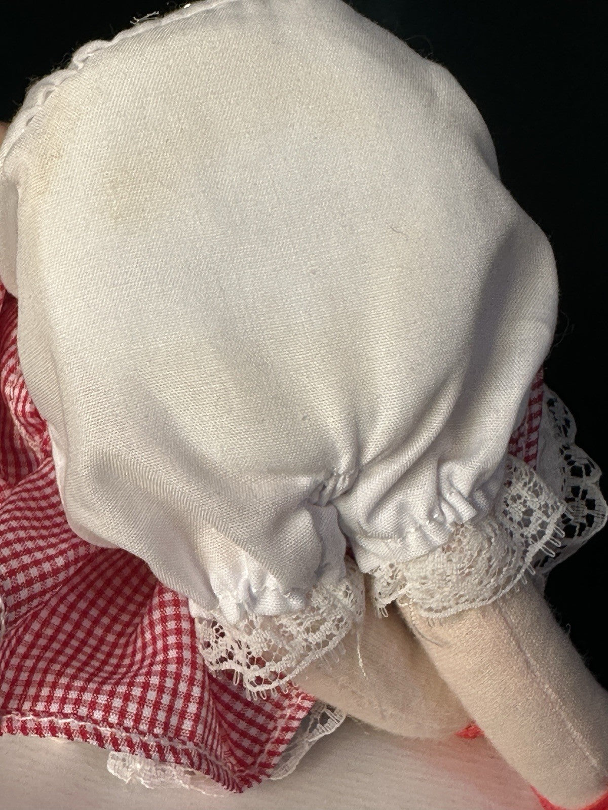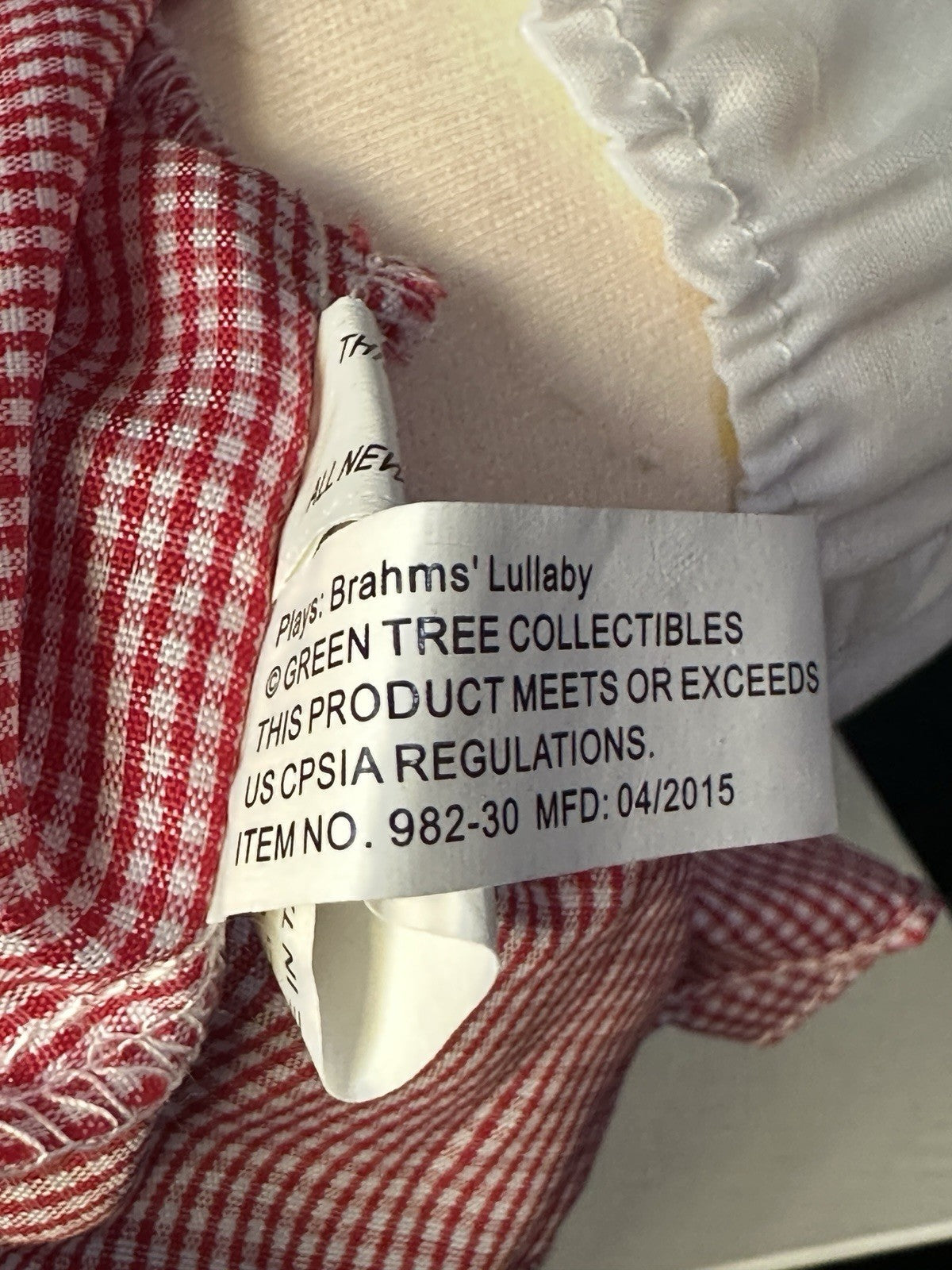 Two cute musical dolls in working condition! Please refer to the photos with a measuring tape for the size. Each doll plays a different music/tune - Dorothy plays "Over the rainbow" and Goldilocks plays "Brahms Lullaby ". Some stains are present yo both dolls bottoms - see photos. Selling as a lot only. Decor apple basket is not included.