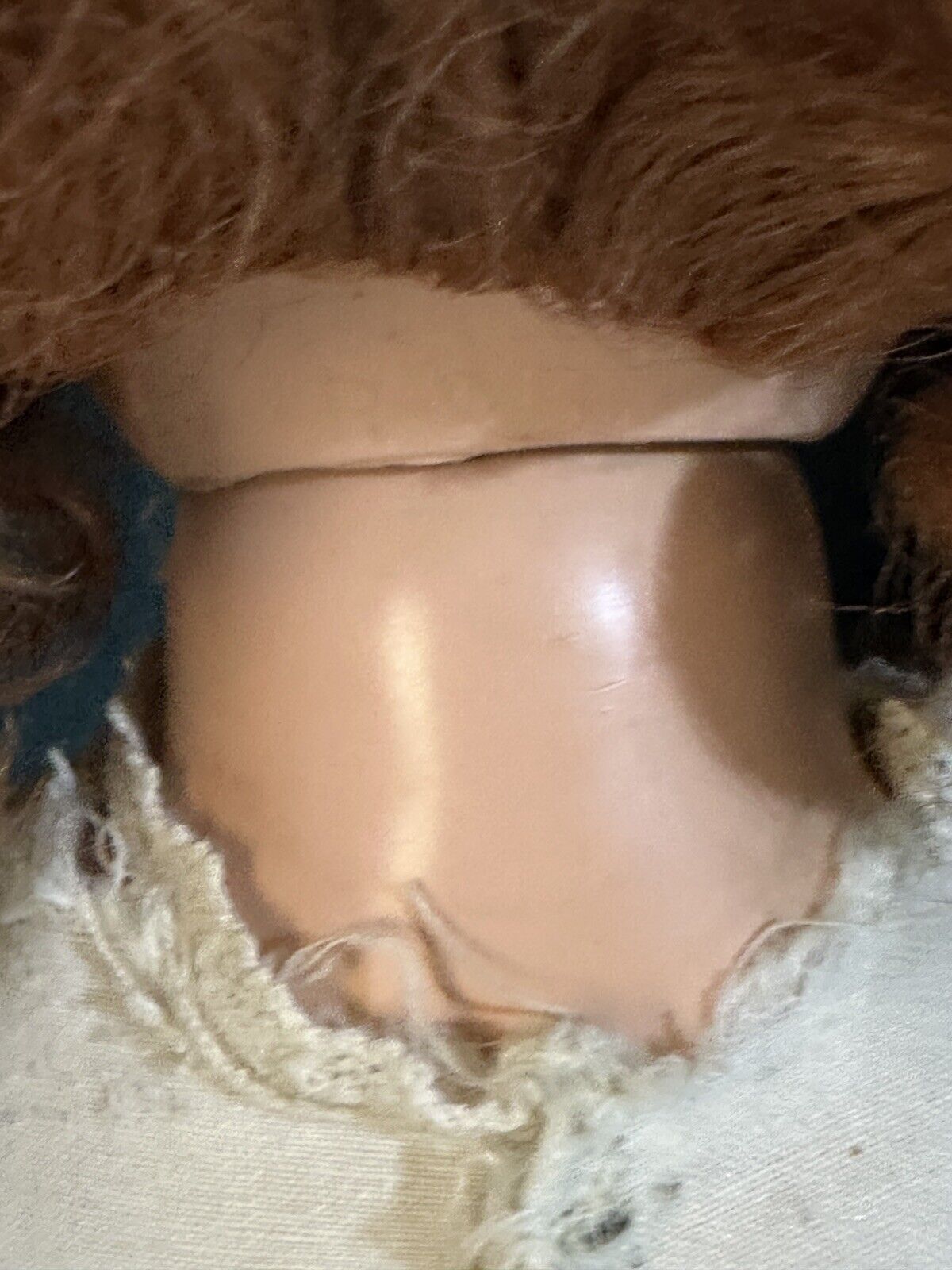 Lot of 3 Beautiful walker dolls. Their heads are turning from side to side when their legs are moving. Dolls are not marked. Dolls were not undressed so we didn't inspect their bodies and selling them as they are. Each doll is about 17" tall. All dolls have sleepy eyes. Stringing is good to some of them and some are a little bit loose. We are not sure if their outfits are original. Stains/holes are present. Some slight plastic odor might be present. Stands are not included.