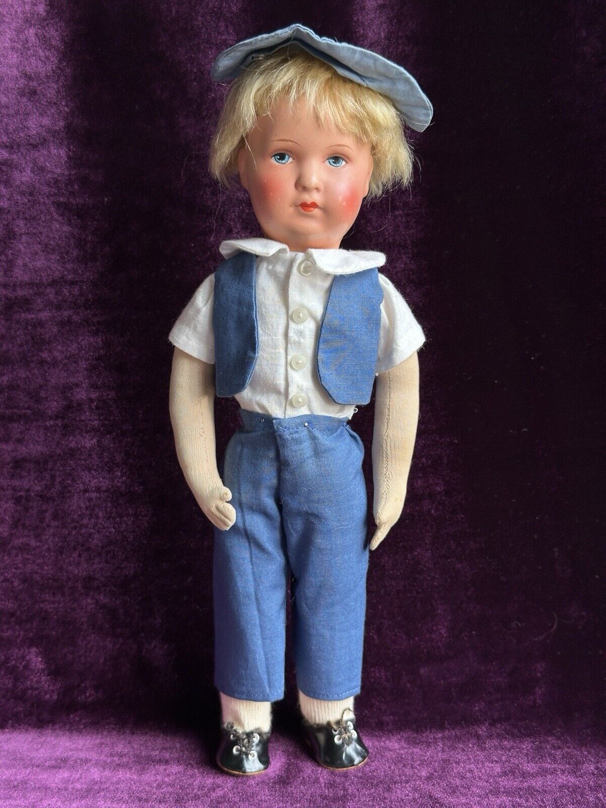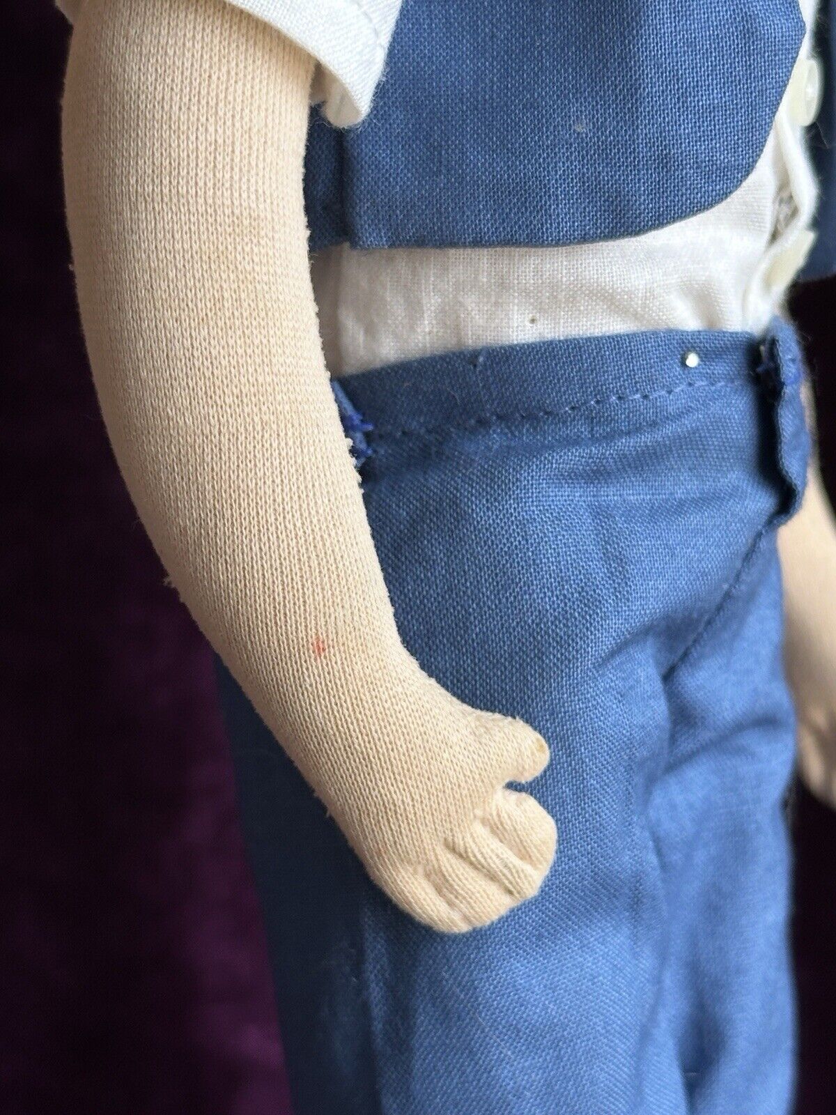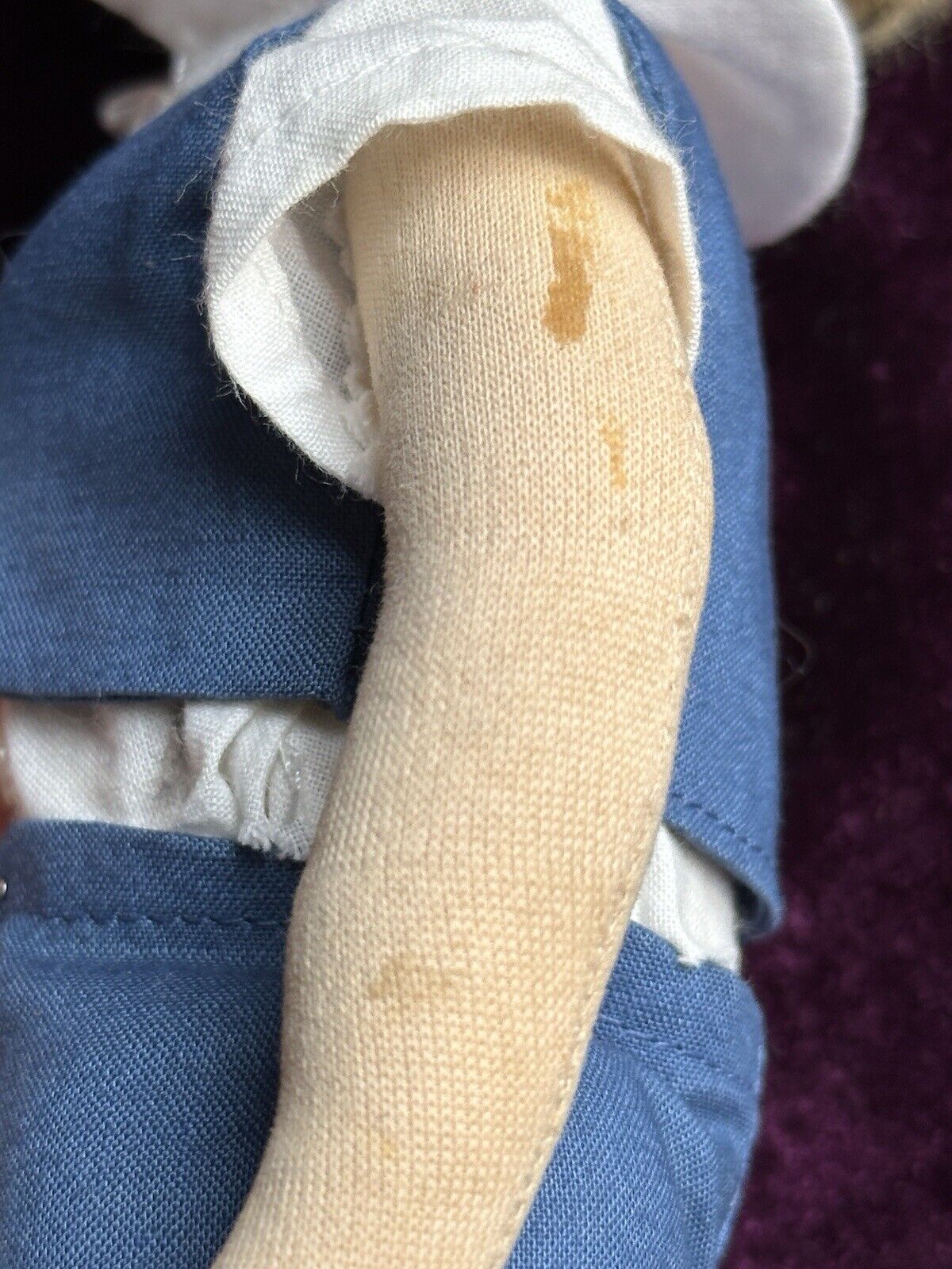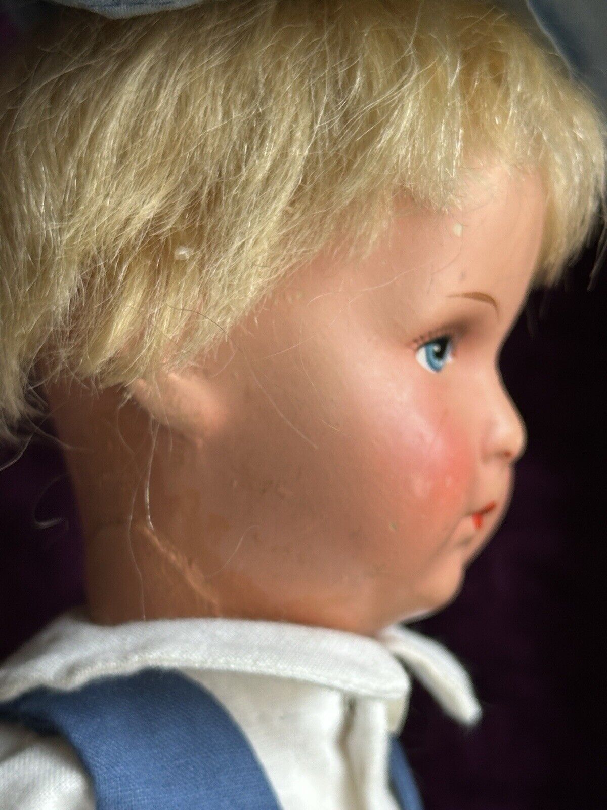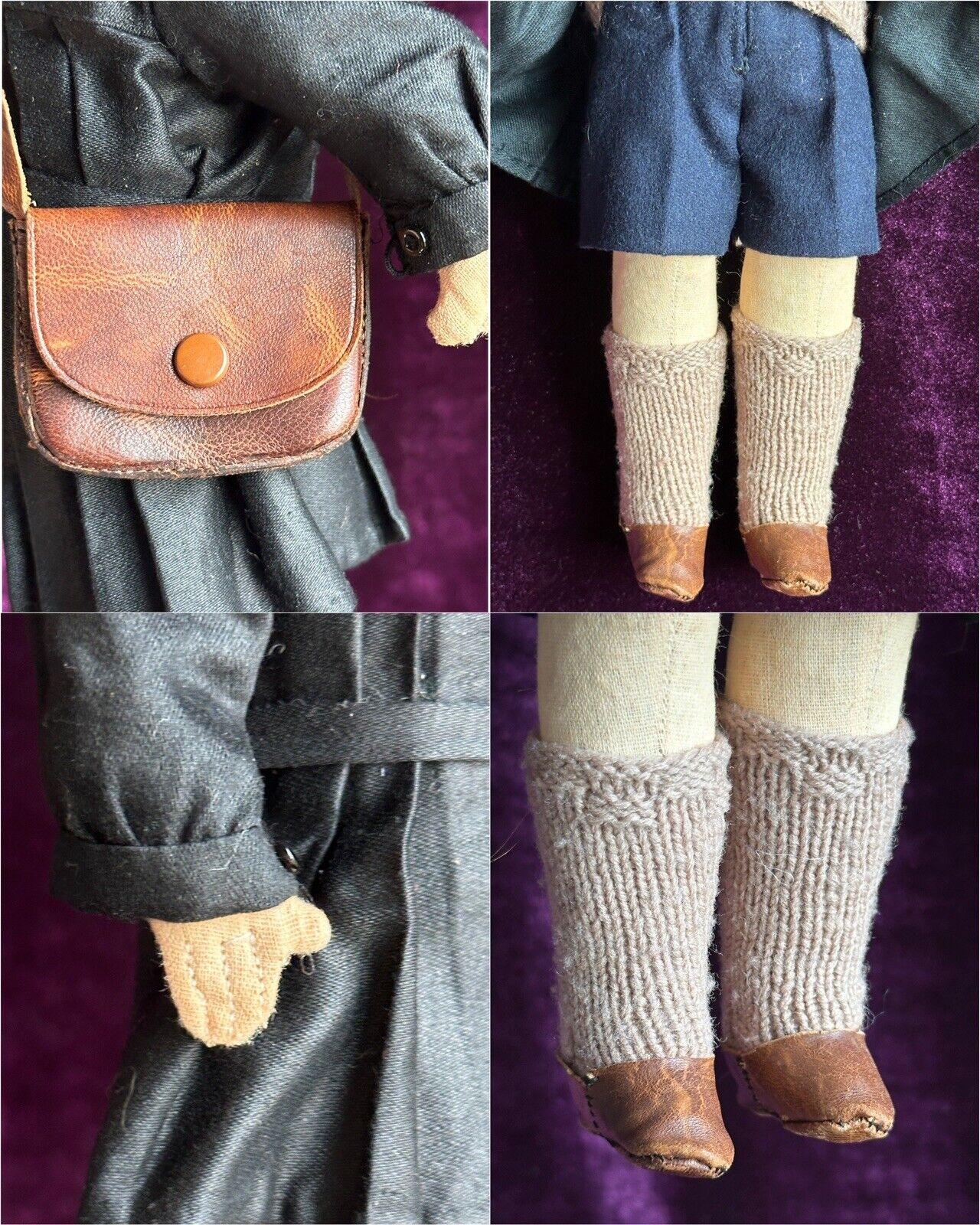 Great selection of vintage collectible dolls. There is one Armand Marseille doll. We do not know anything regarding the origin of he other 2 dolls. They are unmarked. Both have composition-like heads and cloth bodies. We are not sure what material the heads are made of. Marseille doll has a repair to the back of head. The largest doll has some wear to the head. Otherwise, the dolls are well preserved and clean. All three are beautifully dressed and are ready to be displayed. They are 18" and 12" tall.