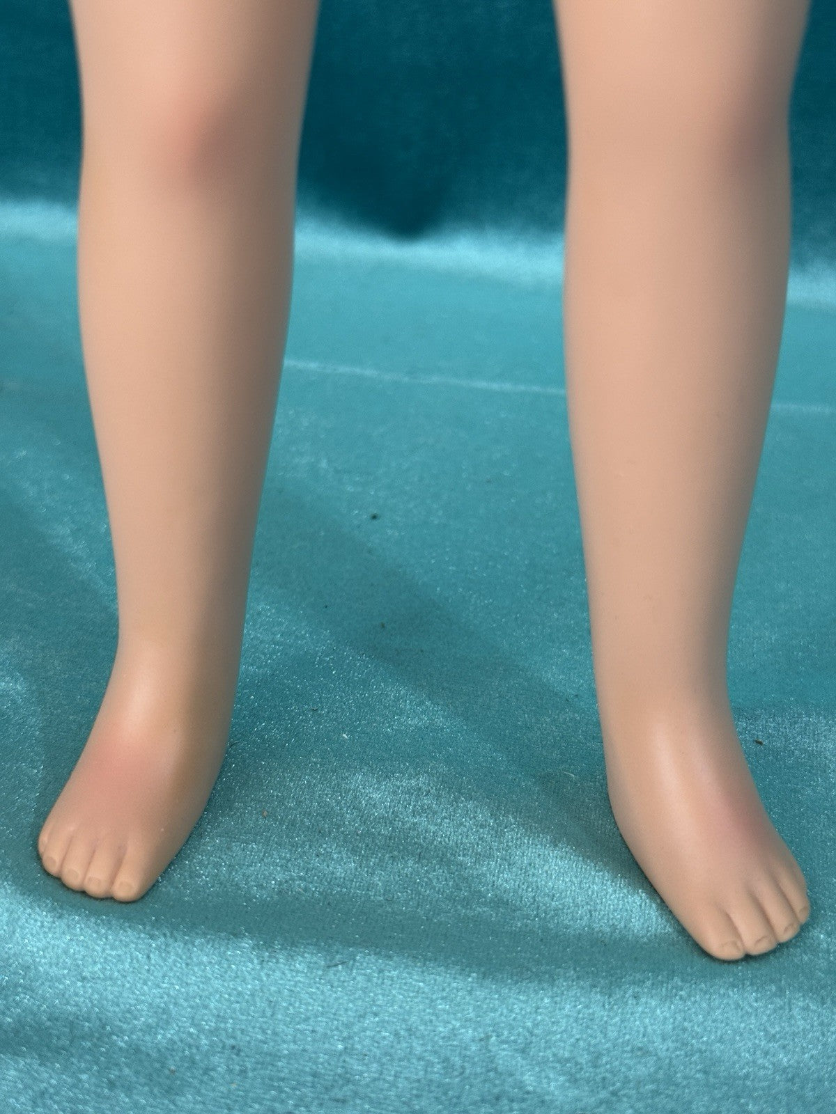 Doll by Mary Lynne Saunders from Mary Hoyer designs. She is all vinyl. Back of the head is marked. She is wearing her original tagged clothes. No box, tag or COA. Comes with a tiny tagged clutch.