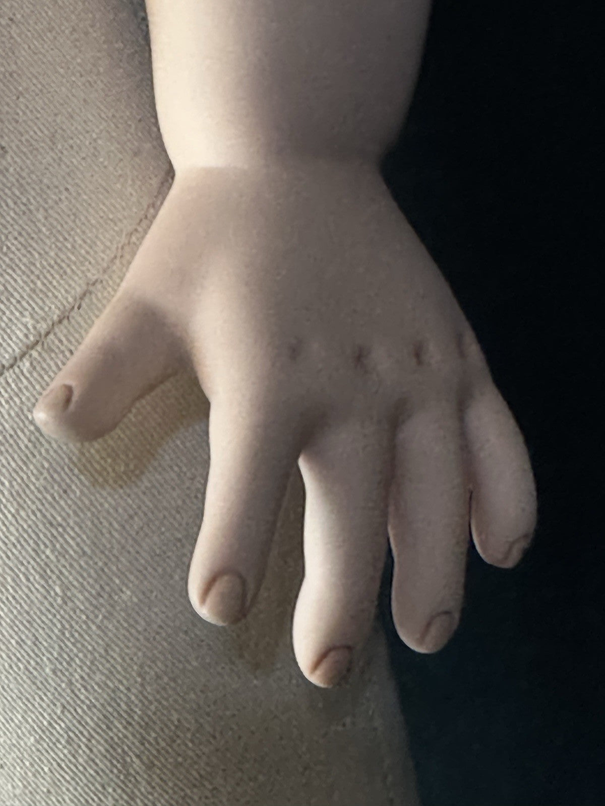 OOAK Artist porcelain doll by Ruth Treffeisen. Numbered 1 on her neck Her name is Natalie. She has porcelain swivel head, shoulder plate, partial arms and legs below the knees. The rest of her body is stuffed cloth. Beautiful face painting; her hair feels like mohair hair. Signed and numbered on her neck and signed by artist on her back. Comes in a simple (not signed) box; no COA.