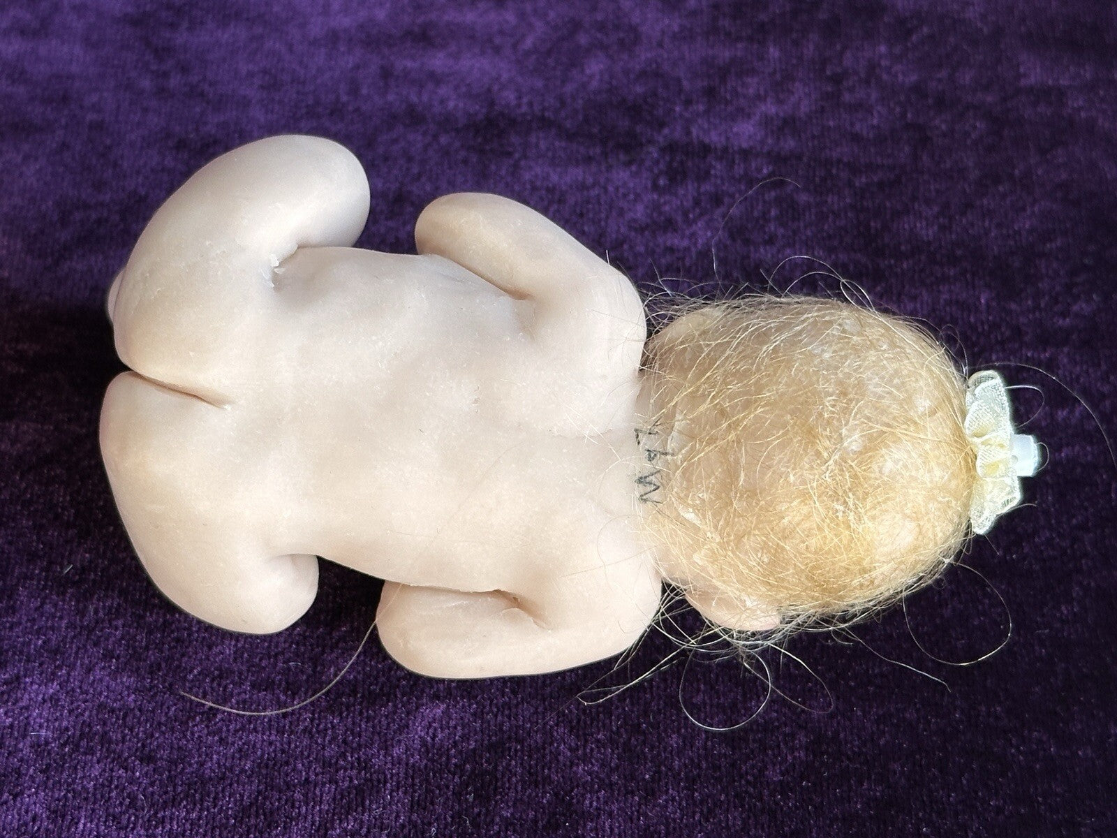 This beautiful tiny creation is hand sculpted by famous artist. The doll is 3.5" tall. Was stored in the original box with certificate. The doll is in a very good condition. It is hard to touch and is one piece. The box is a little worn. Please refer to the pictures for more details.