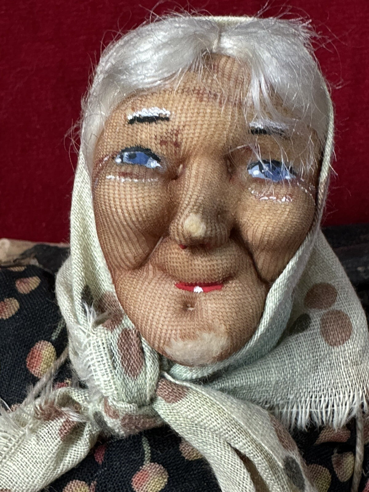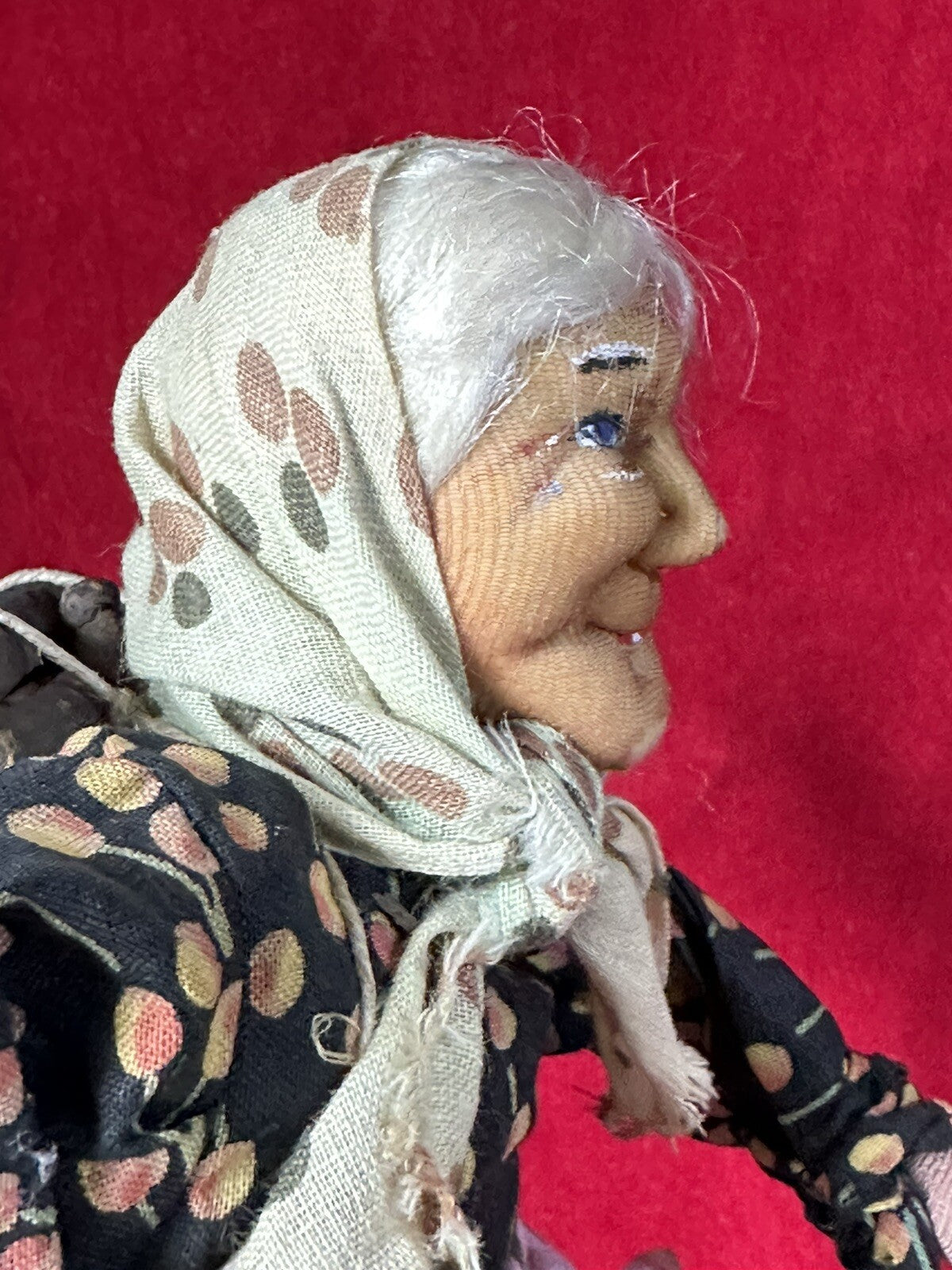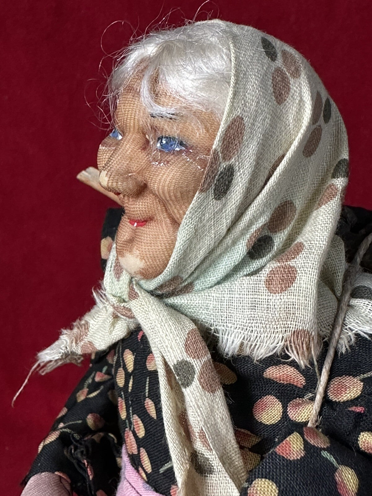 Original French Bernard Ravca 1920’s (?) Stockinette Old Lady 9 3/4” Doll