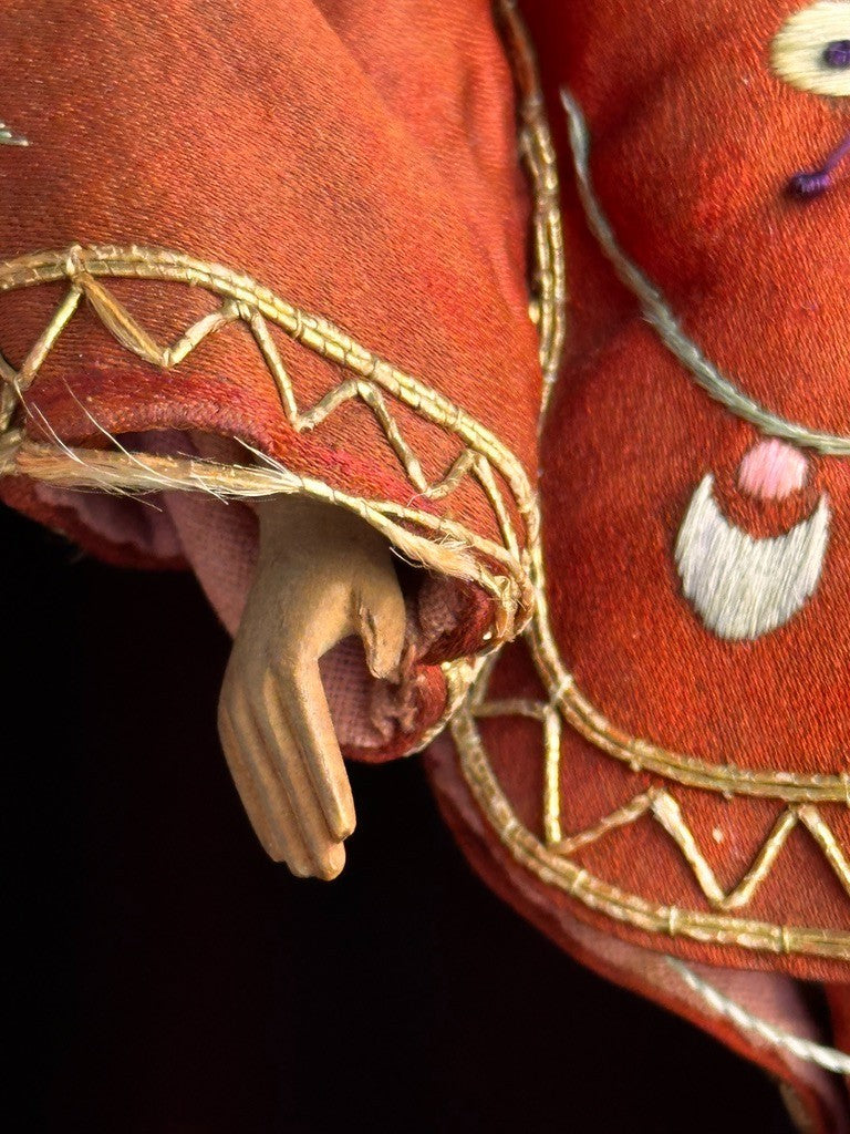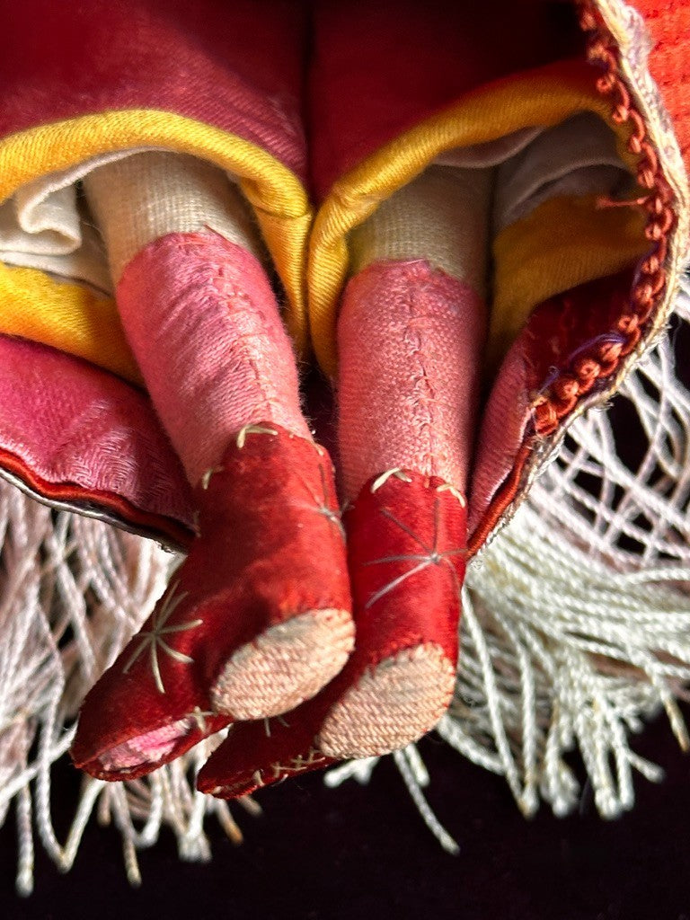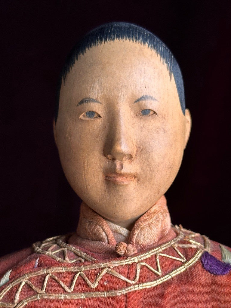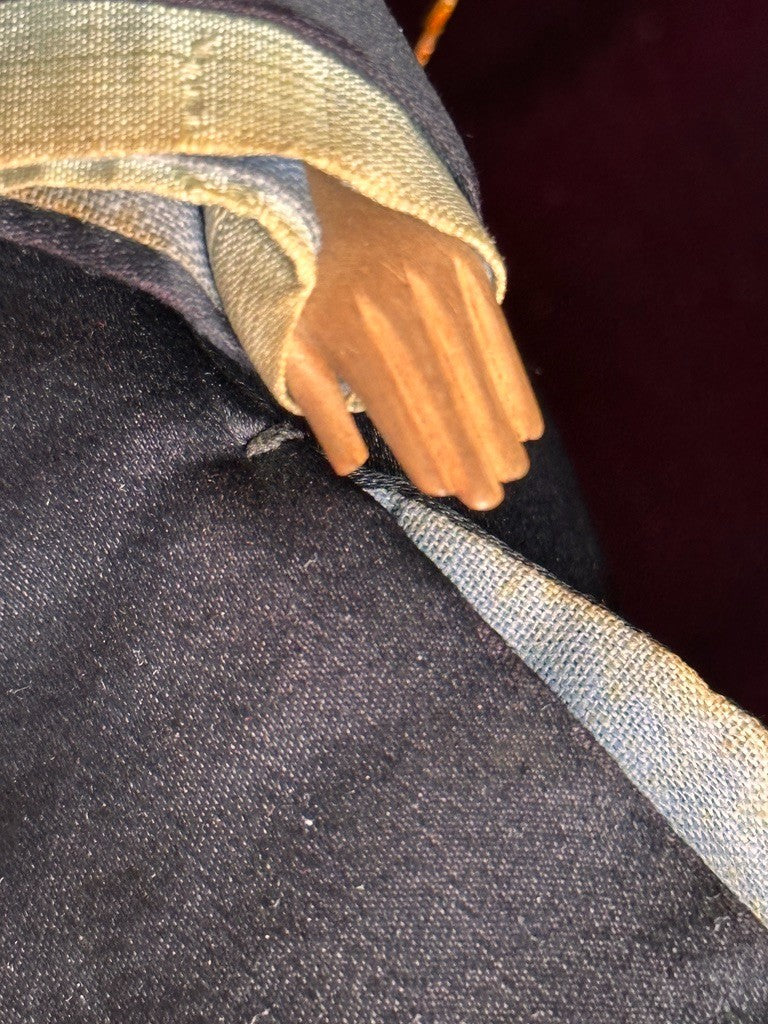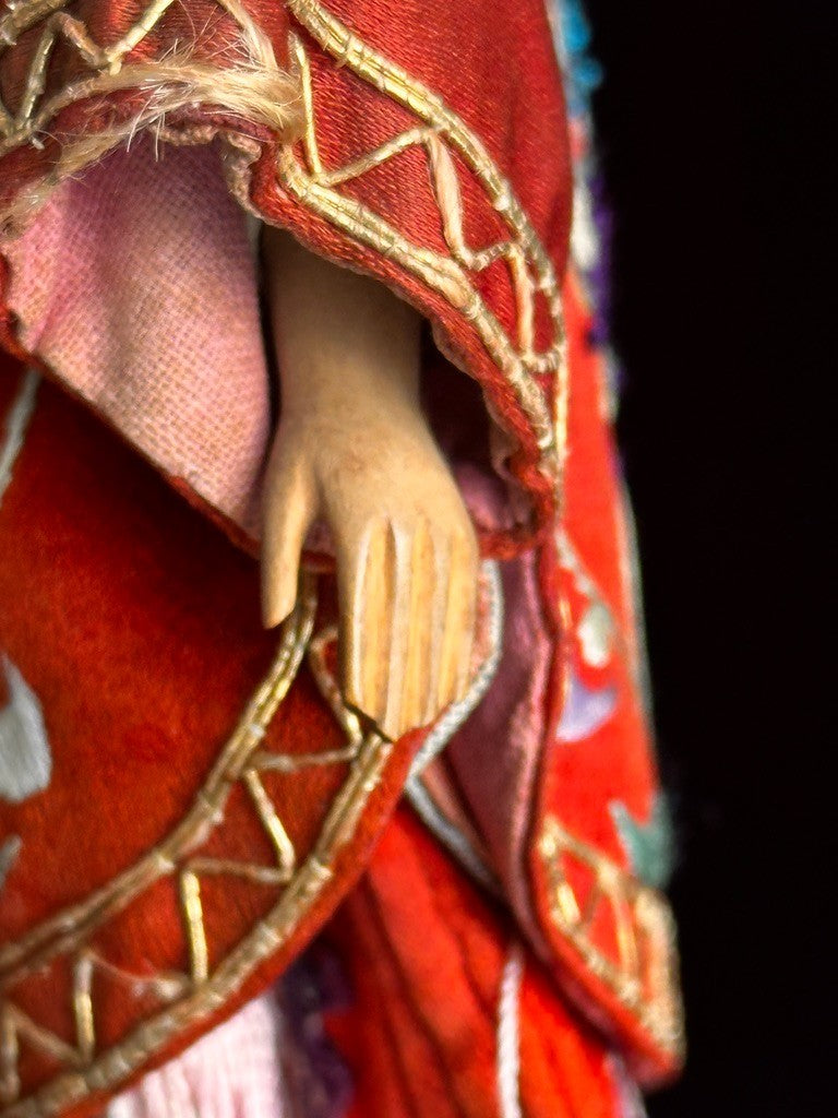 Pair of Antique Door of Hope Mission Carved Wood Cloth Bride and Groom Dolls