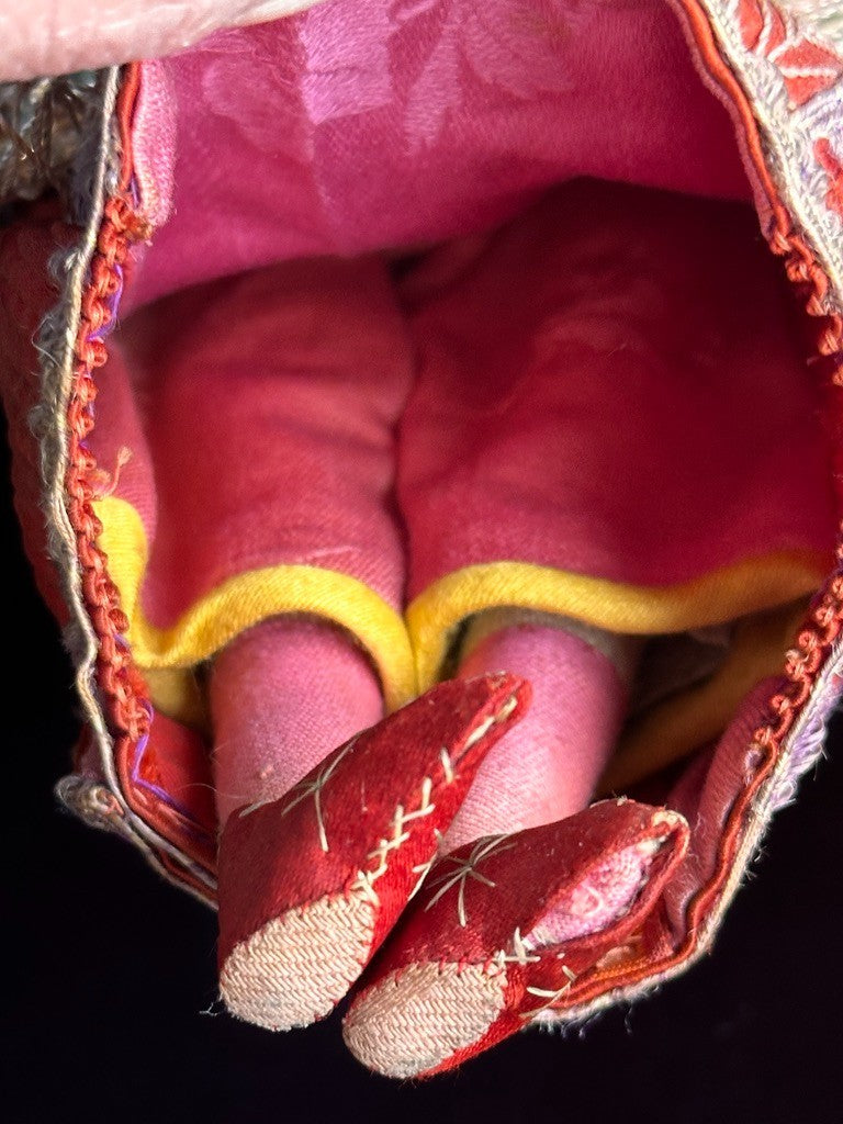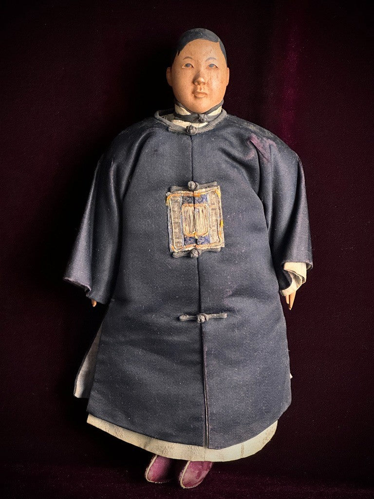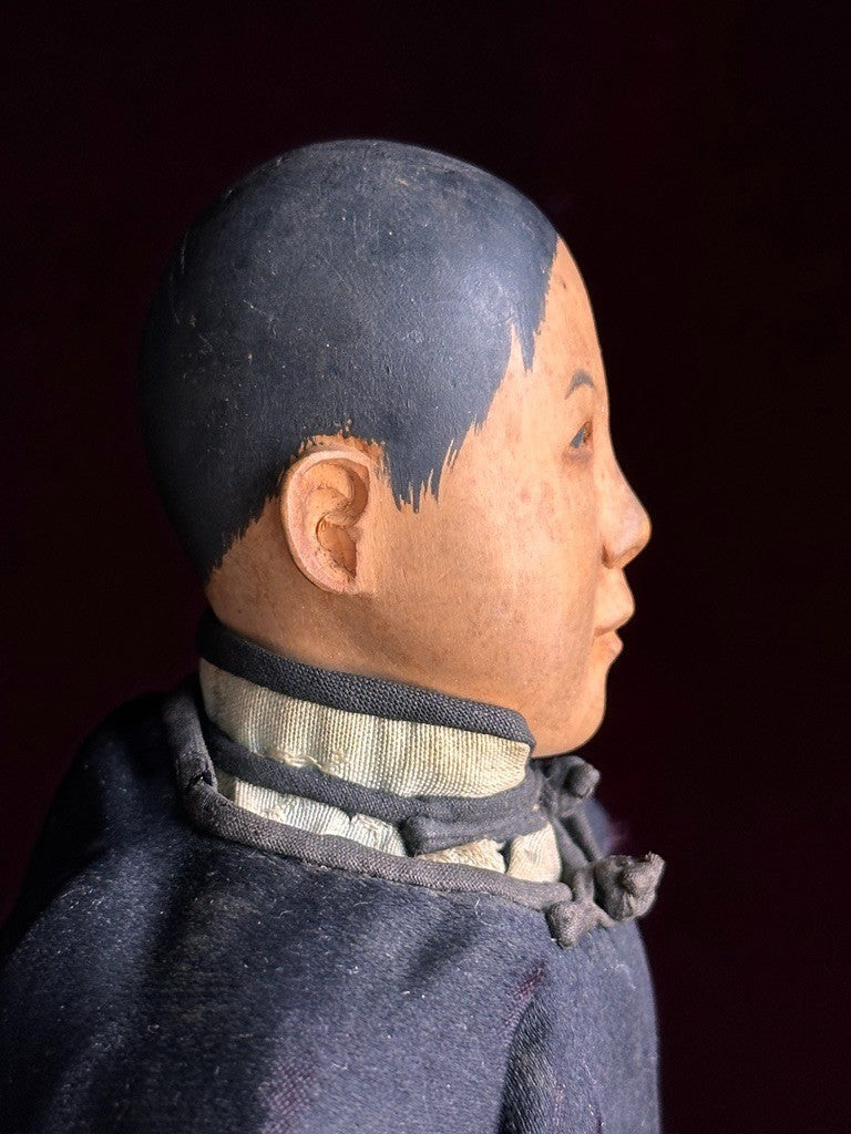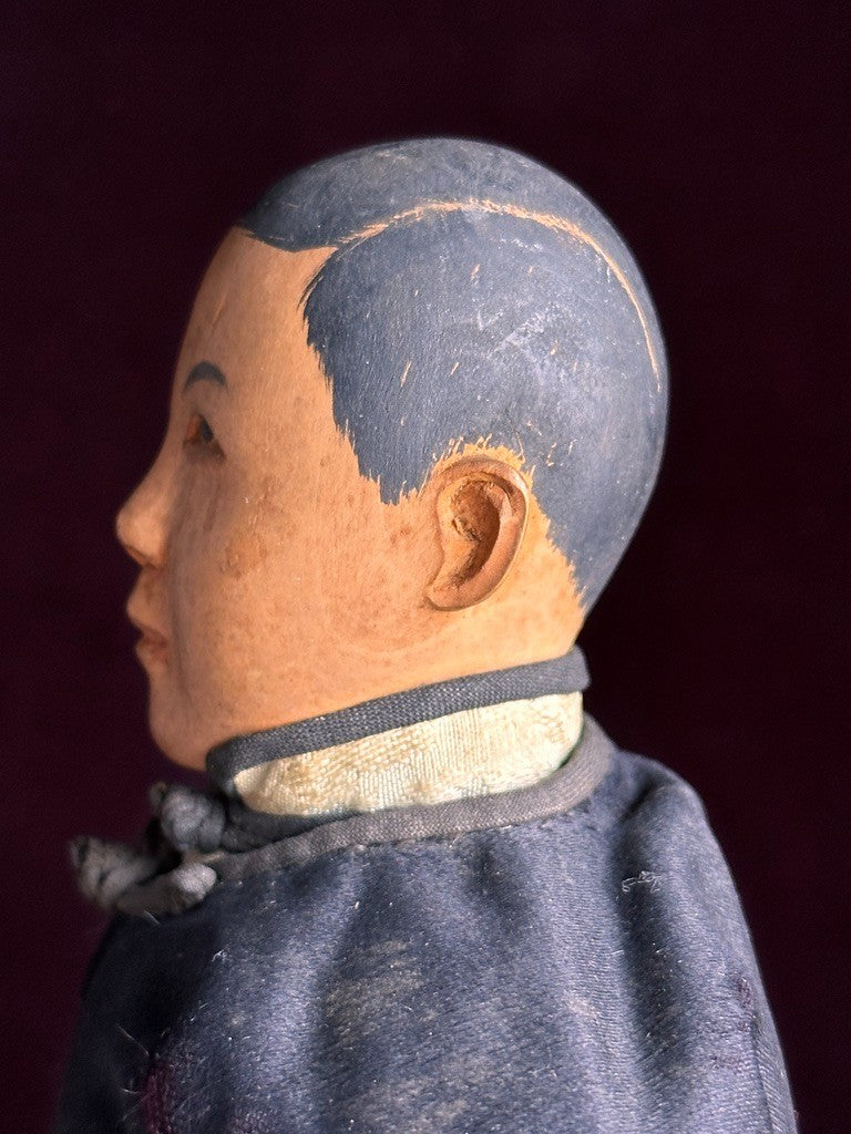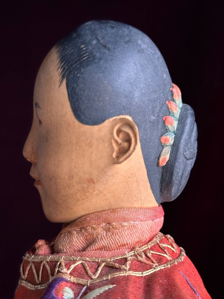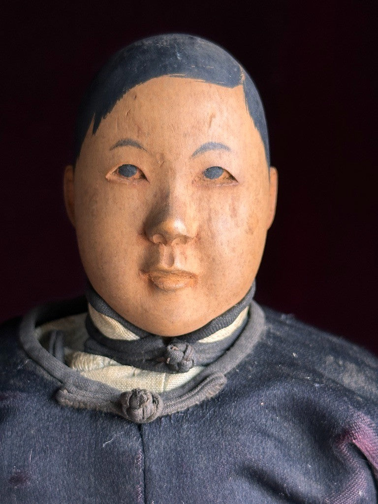 Pair of Antique Door of Hope Mission Carved Wood Cloth Bride and Groom Dolls
