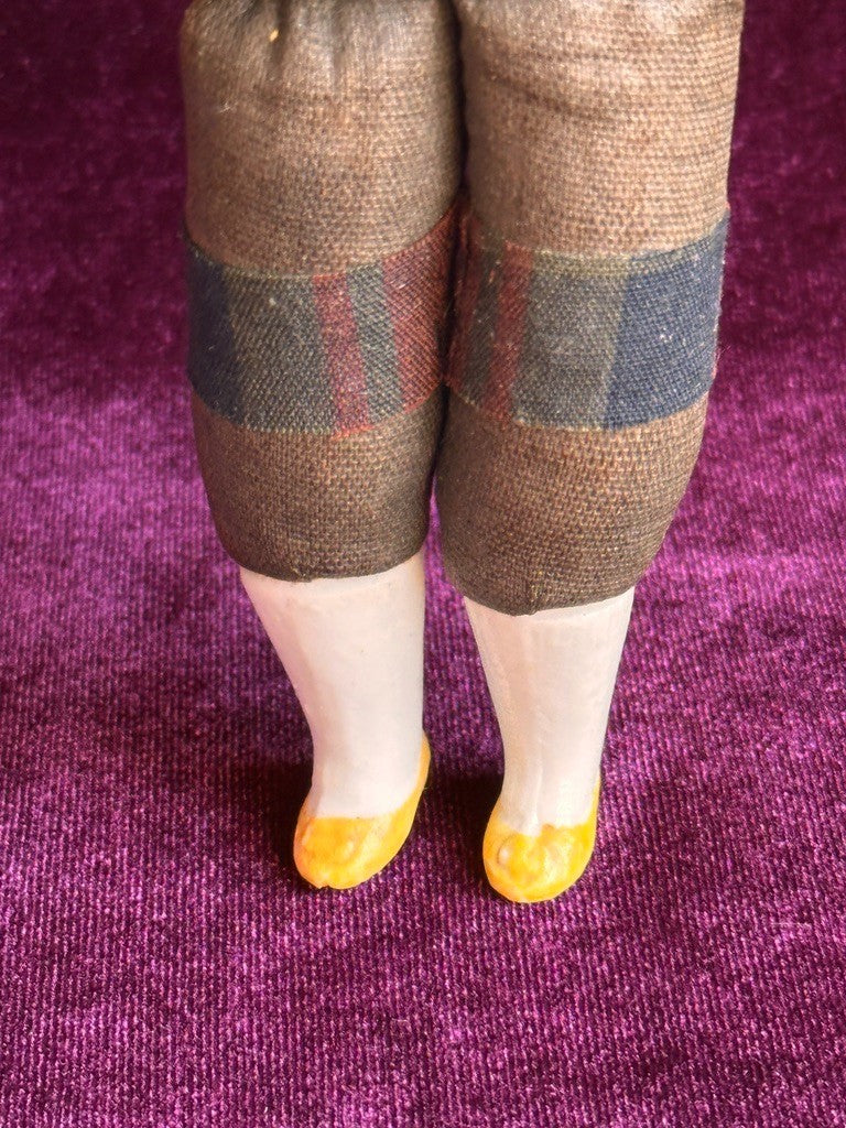 Rare Antique German Hertwig 7.5” Bisque Molded Torso Character Dollhouse Doll