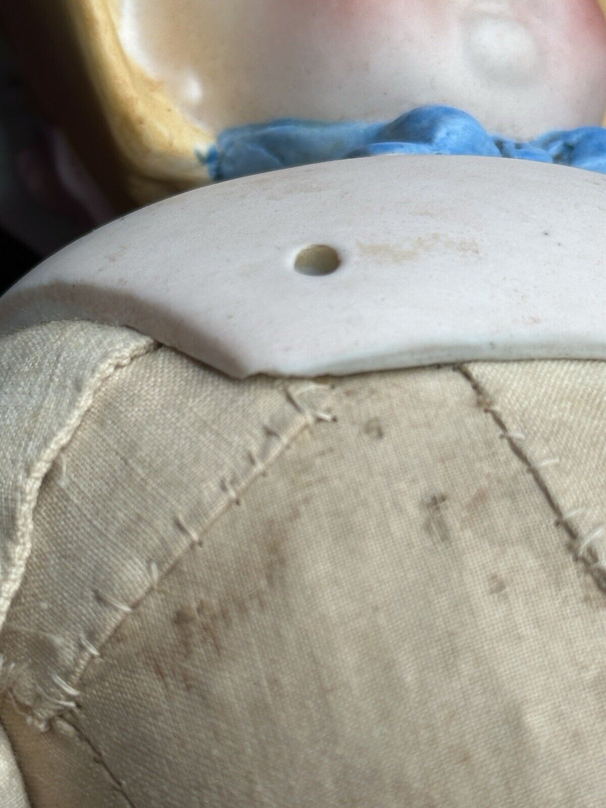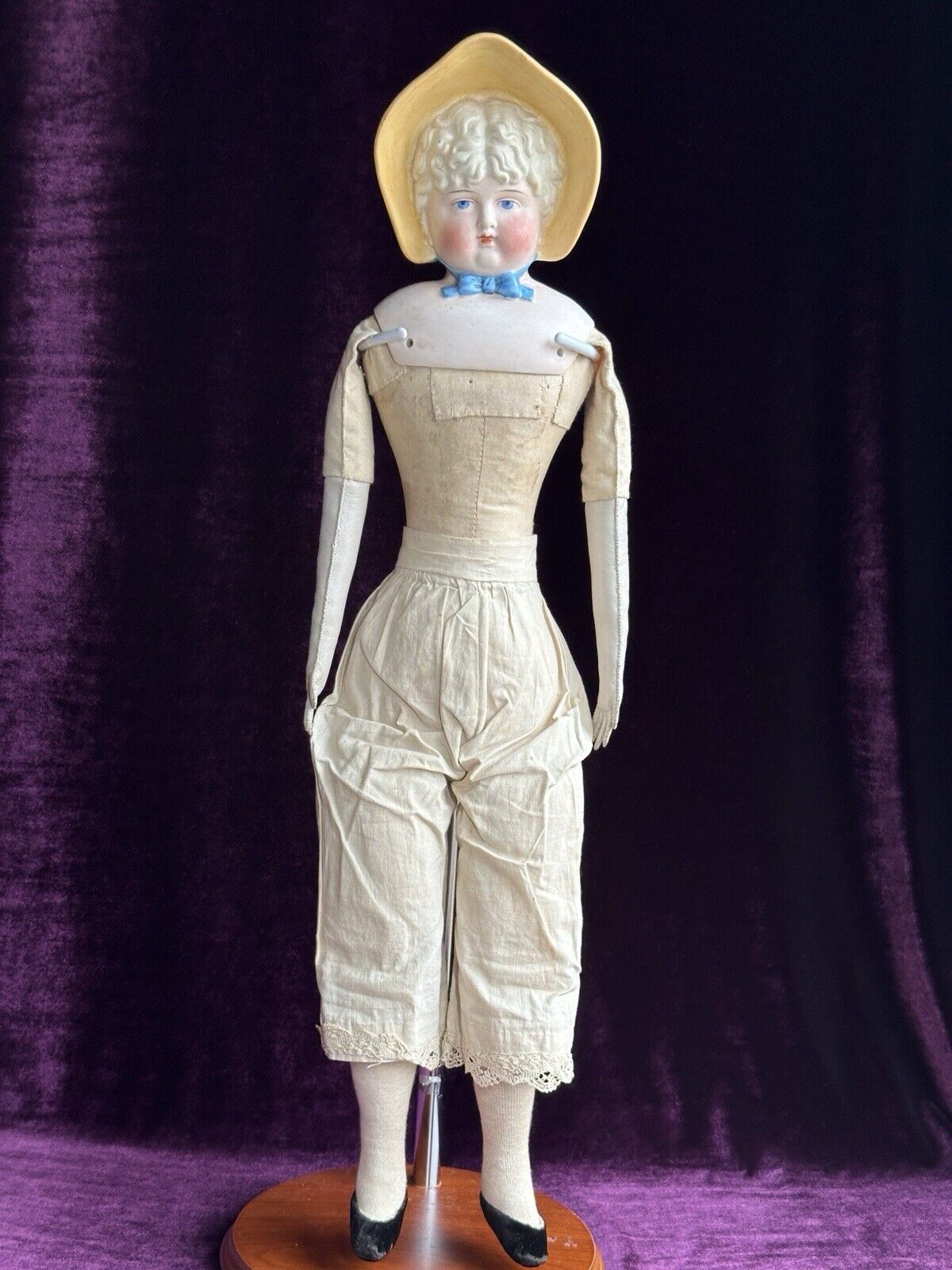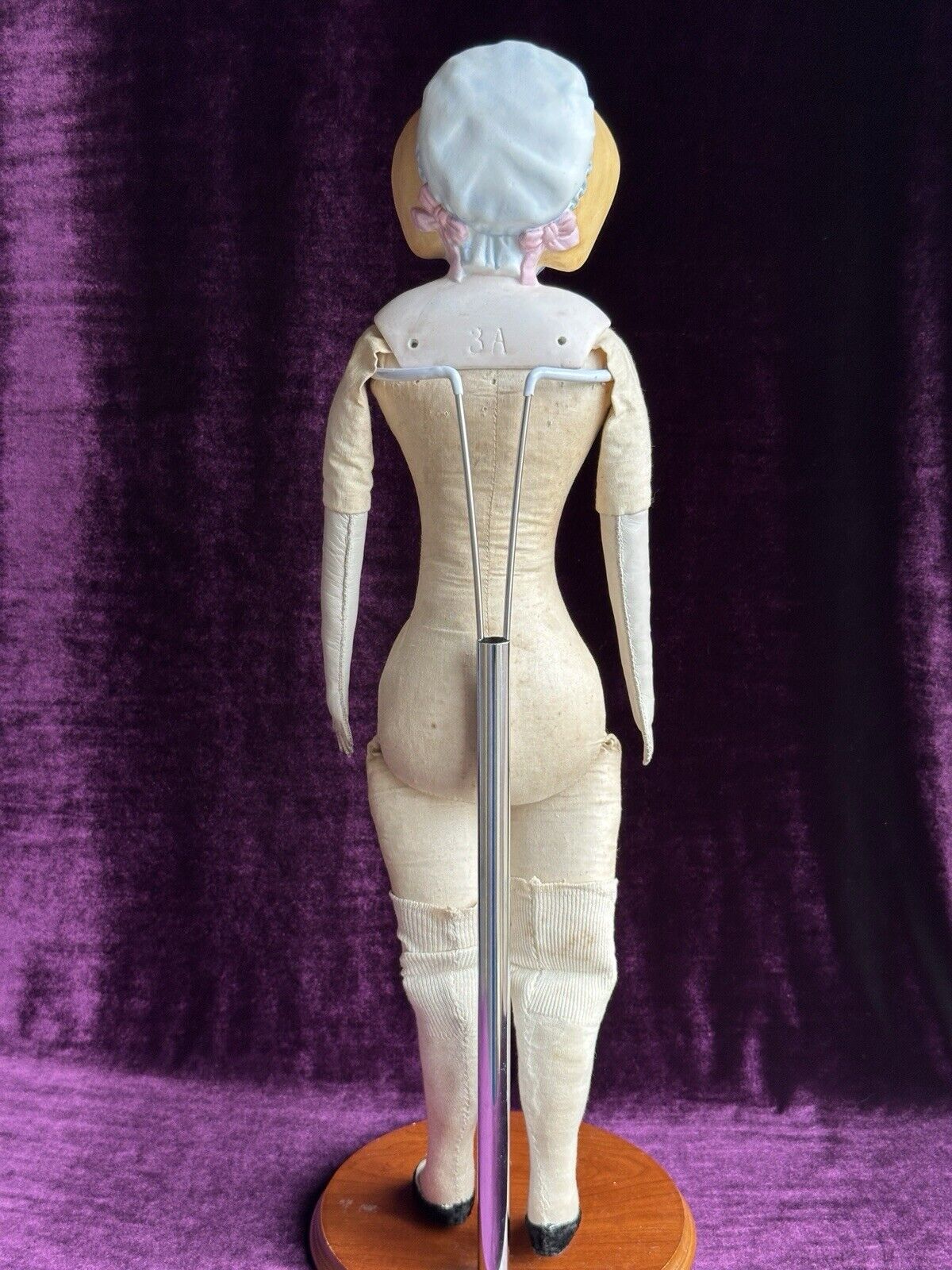 Rare Large Antique German 23” Hertwig (?) Molded Bonnet Bisque Head Parian Doll