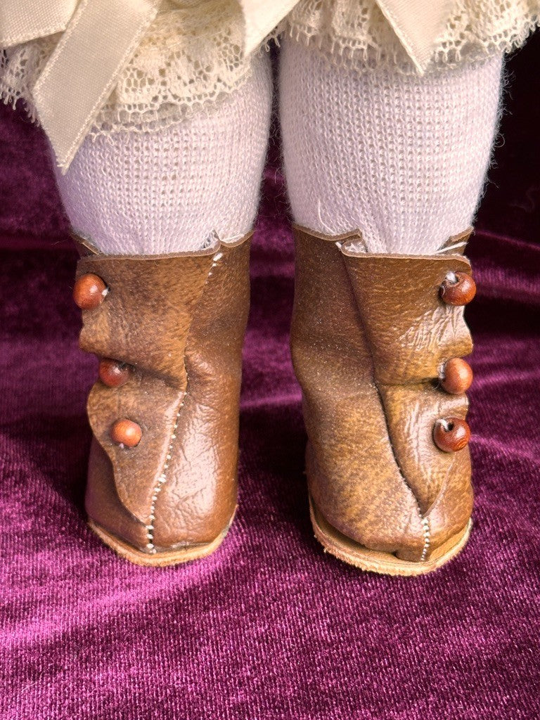 Here is a lovely reproduction of a Jumeau doll. She has a porcelain head and a composition body.