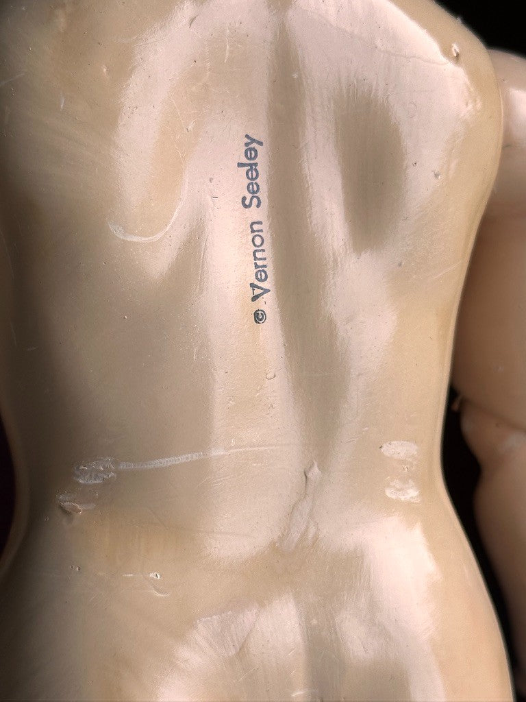 This sweet old doll is in good condition with no damage. The head is made of porcelain, and the rest of the body is composition. She is signed and dated by the artist.