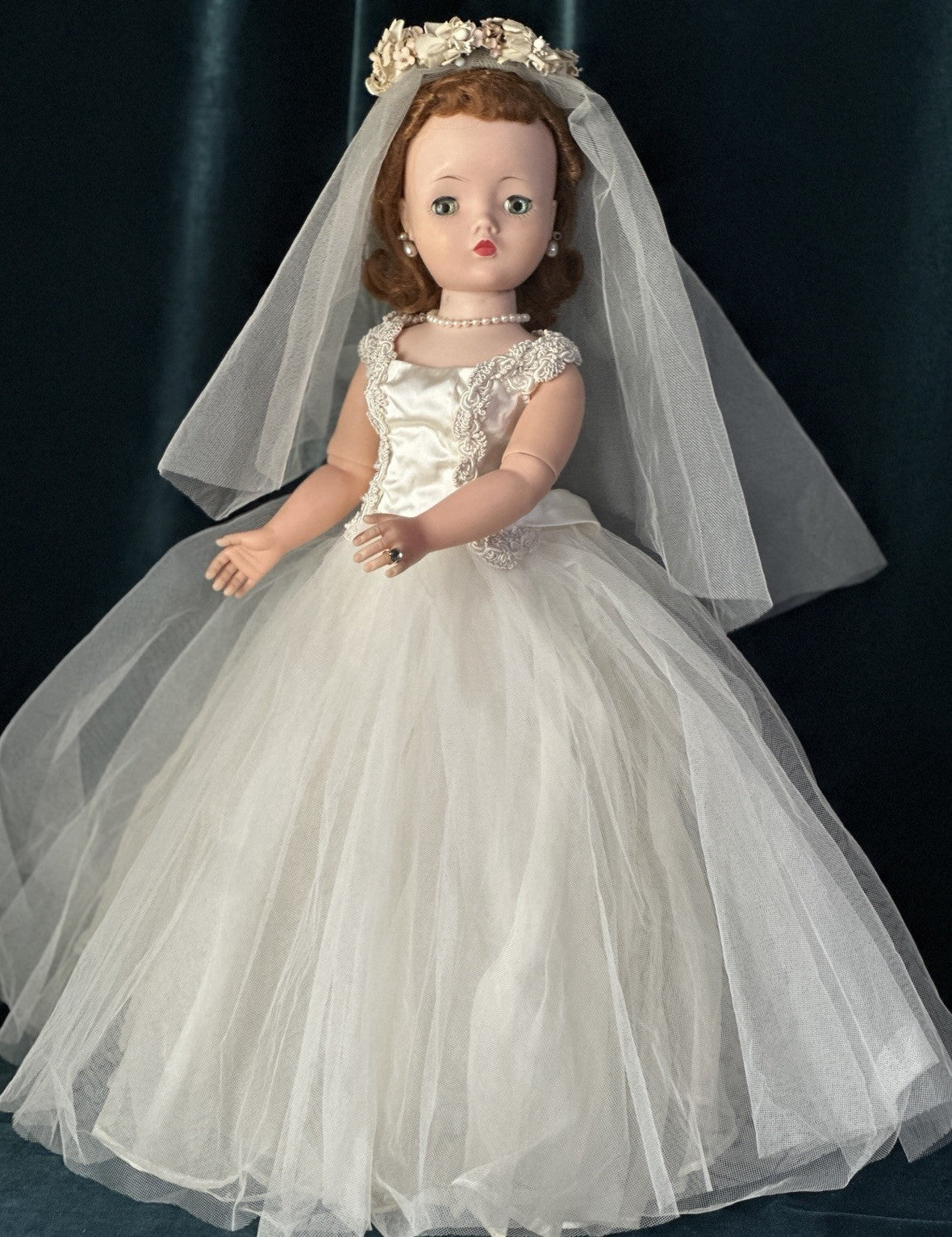 Vintage 1950’s Madame Alexander 20” Cissy Hard Plastic Doll Tagged Bride Outfit