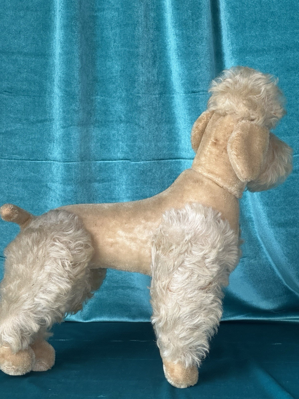Original vintage, from 1950's, stuffed plush dog toy poodle created by Metropolitan Fur Toy Company. For the size please refer to the photo with the measuring tape. Comes with his original box - some minor damage is present.