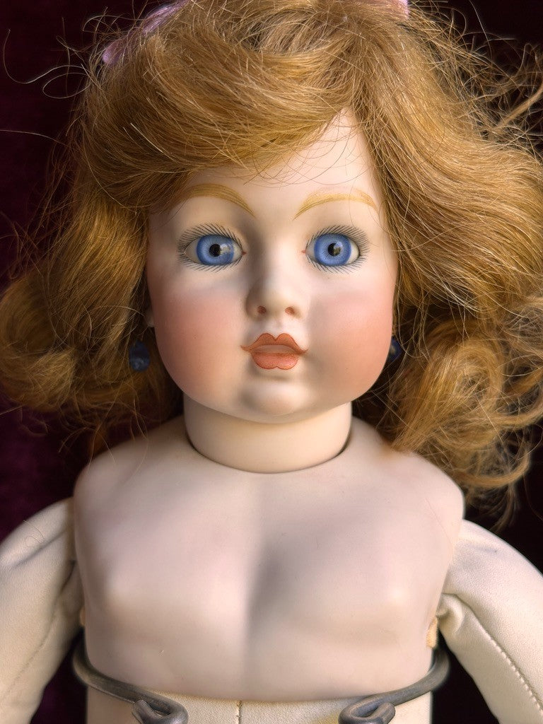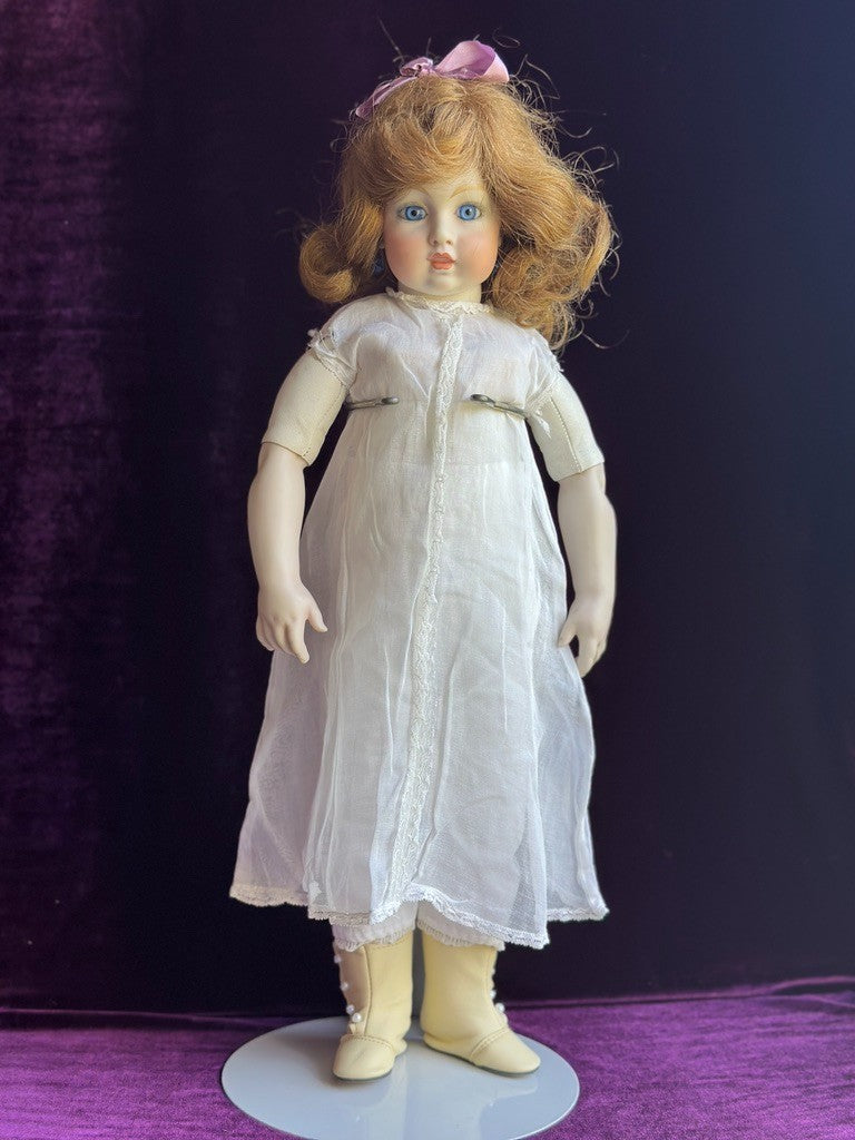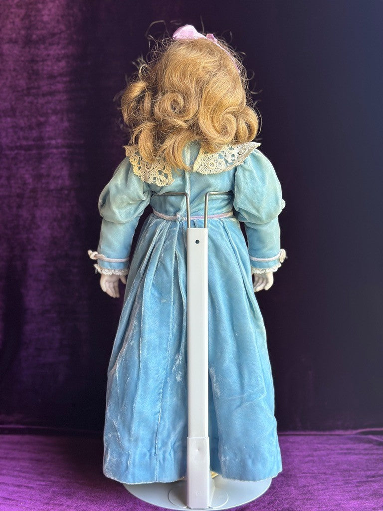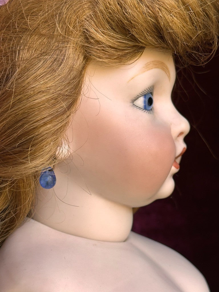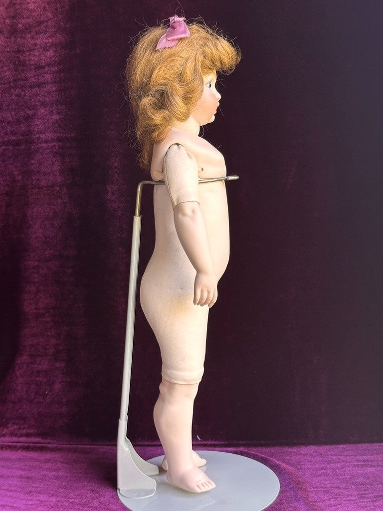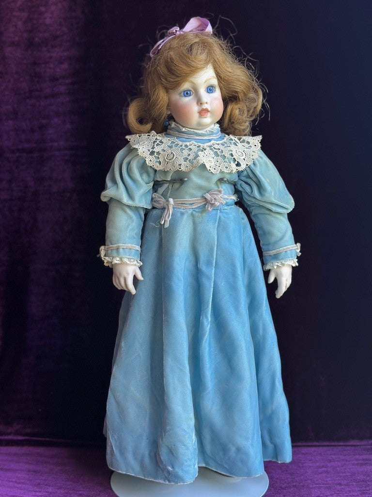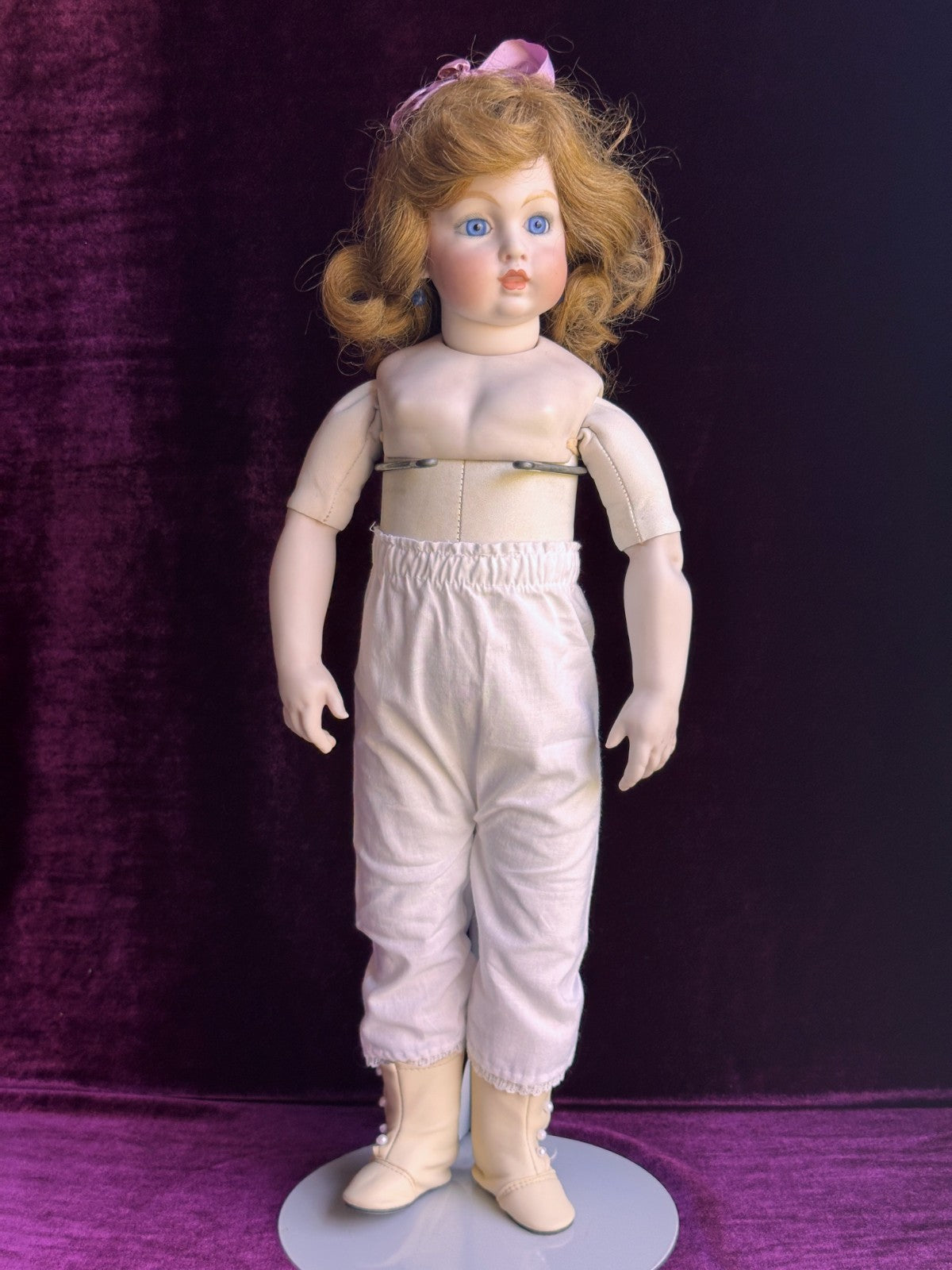 Very pretty girl. She is signed and dated by the artist. The doll is professionally made, with heavy bisque of much higher quality than typical modern porcelain.