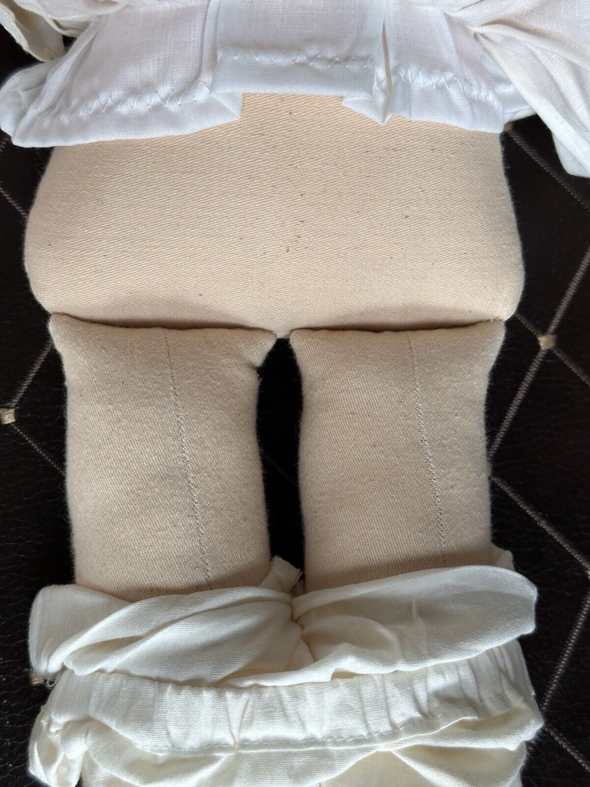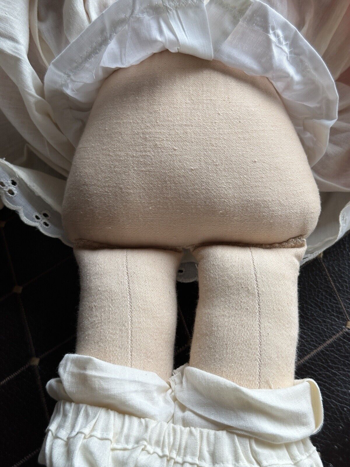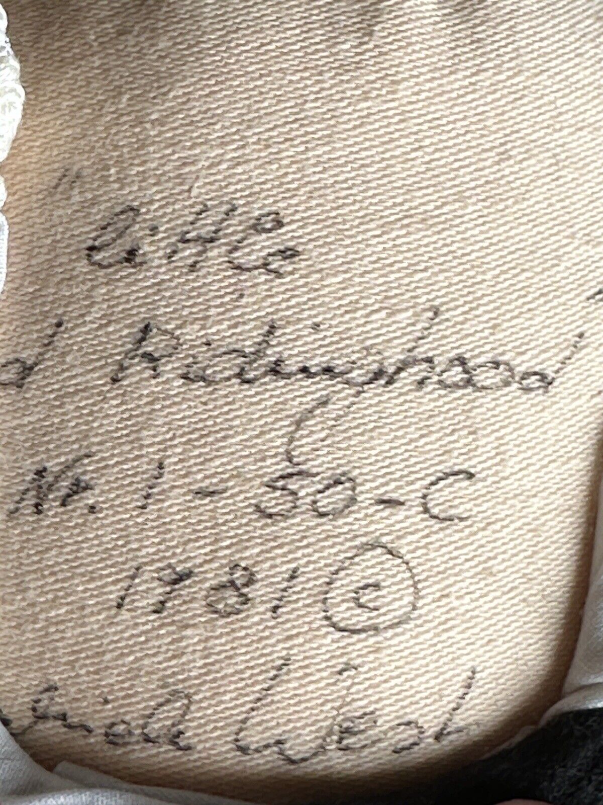This very sweet old doll has felt face. All other parts are made of other fabric. She is signed, numbered and dated on the back. Despite the age the doll is in good condition, but shows some light signs of wear. There is a small stain by her right eye. Looks like there are some dark spots also in the area of hair. Tiny stain to the left arm. Yellowish color to the apron. No other flaws are found. The basket is not original to the doll. It is included with the doll. No stand to the doll. No tag. Please refer to the pictures for more details.