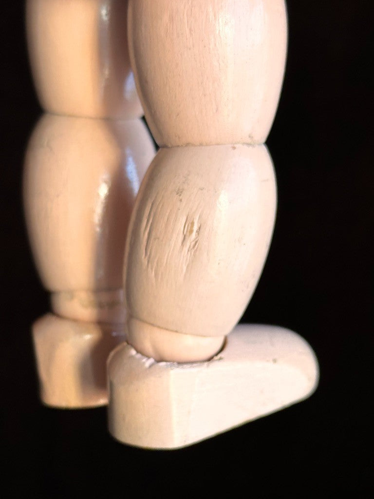 The body is in great condition and shows very light wear, including a small paint chip. The doll has good stringing and all parts are well attached.