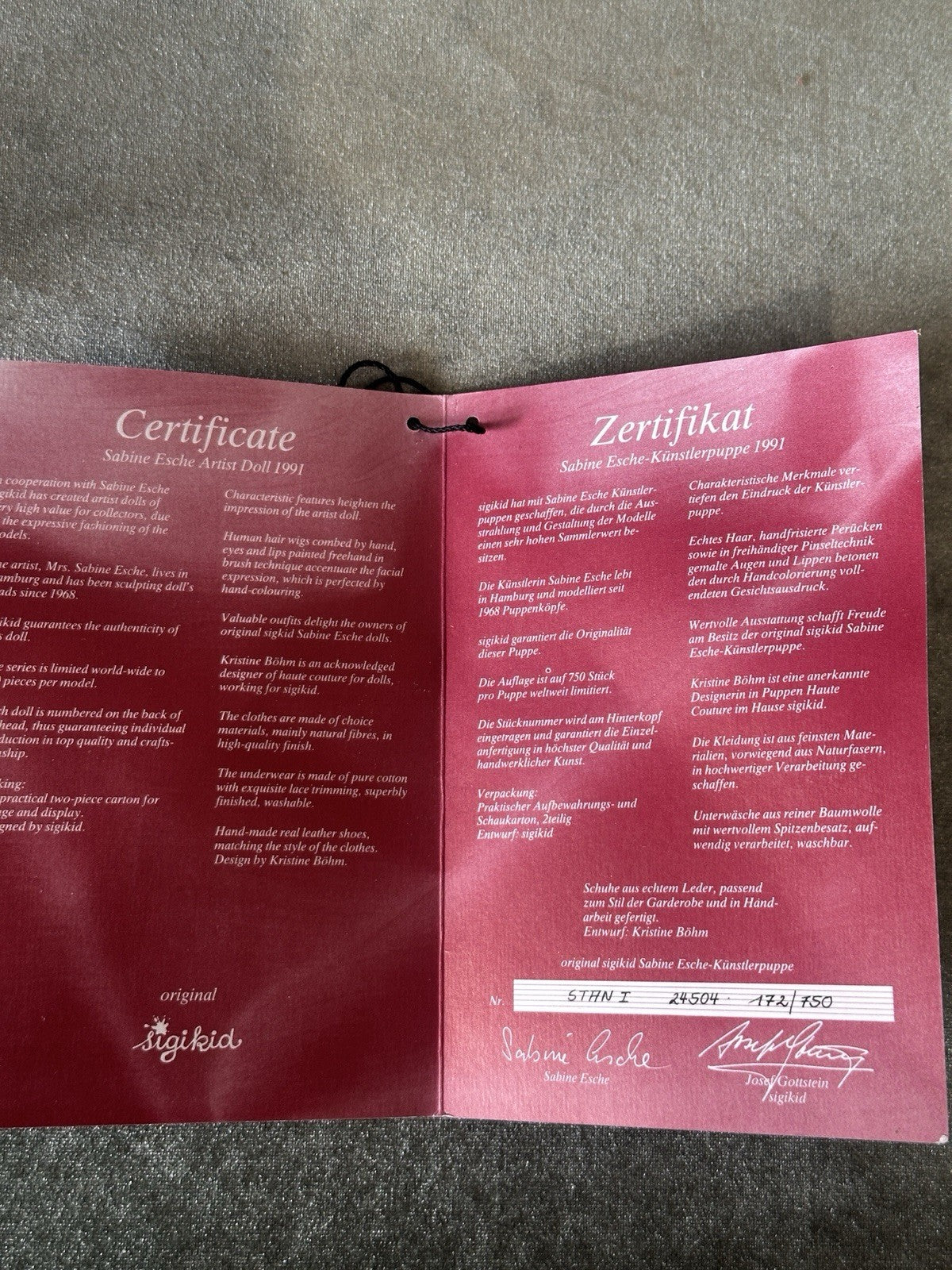 Vintage Sabine Esche Sigikid Company Vinyl Boy 21” Doll “Stan” LE 750 Box + Tag