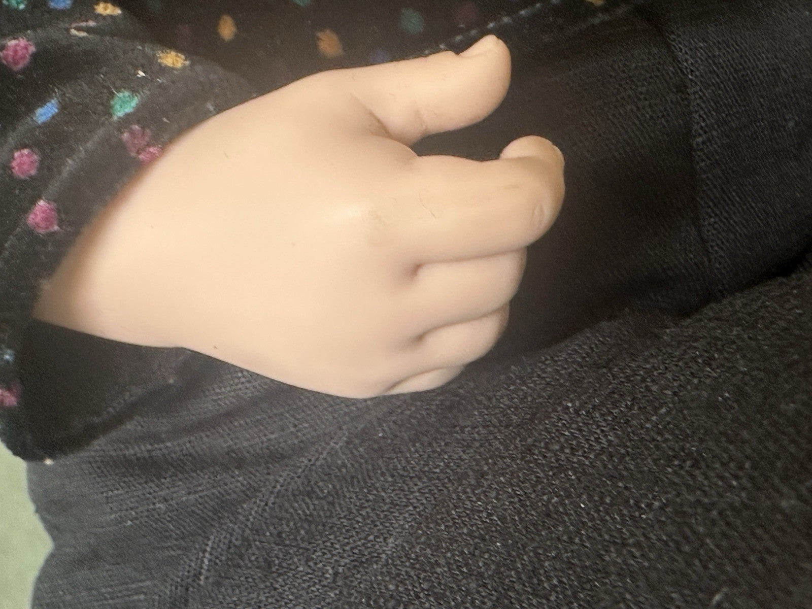 Beautiful realistic vinyl doll from Sigikid company by famous artist Sabine Esche. His name is Stan. He is approximately 21" tall considering bent knees. He is a limited edition of 750 dolls only!!! Doll has vinyl head with breastplate, partial arms and legs. Human hair; shedding. He has to be displayed in a sitting position only. Comes with box and COA. Teddy bear is not included