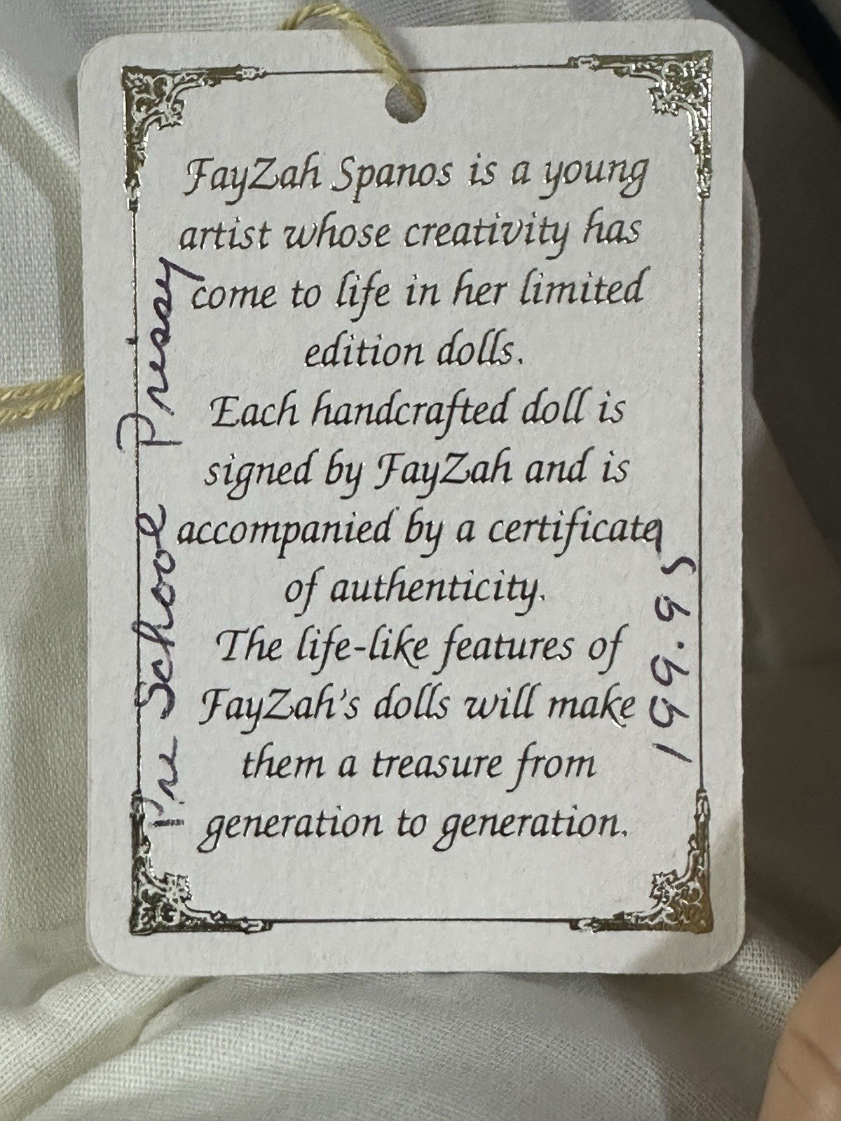 Vinyl Doll “Pre-School Prissy” by Fayzah Spanos 24” LE 200